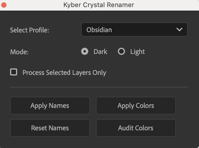I developed the Kyber Color Renamer to automate this bridge between design systems and motion. This custom ScriptUI panel instantly maps hex values to semantic tokens, allowing for one-click toggling between Light and Dark modes across entire projects. By including a built-in audit engine to "heal" illegal colors, the tool ensures that every animation—no matter how complex—remains 100% compliant with the Material Design system.